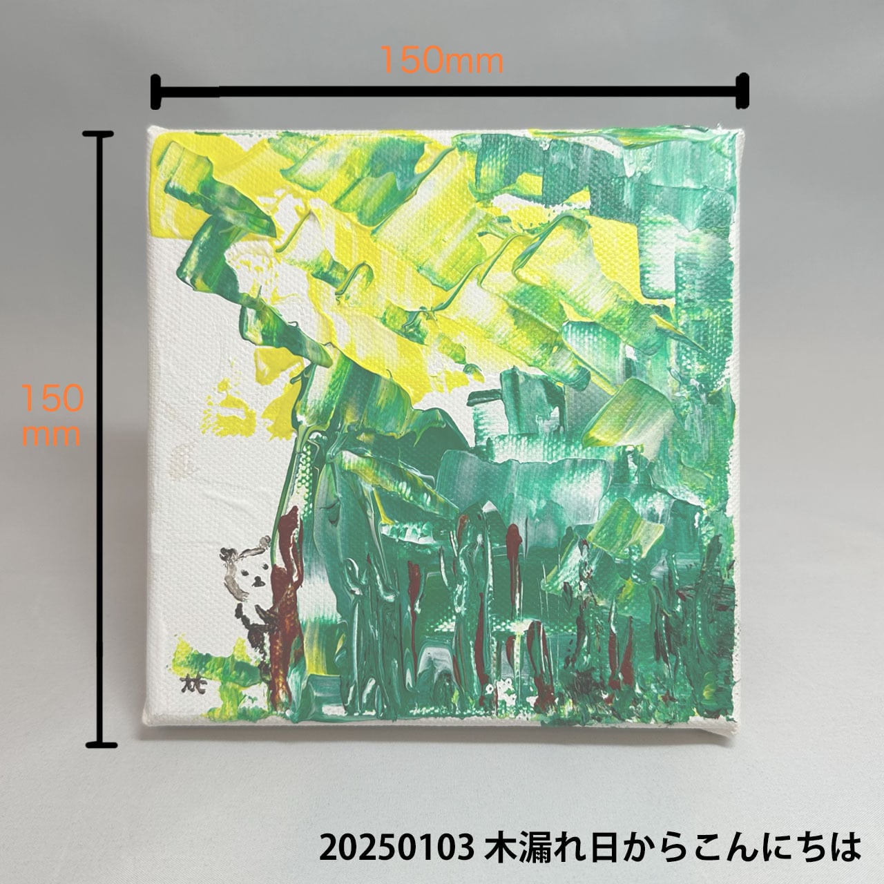 製作:2025年/キャンバス/画材:アクリル絵の具/サイズ:150×150mm。お使いの端末や環境により、写真と実物の色味や質感が多少異なって見えることがあります。