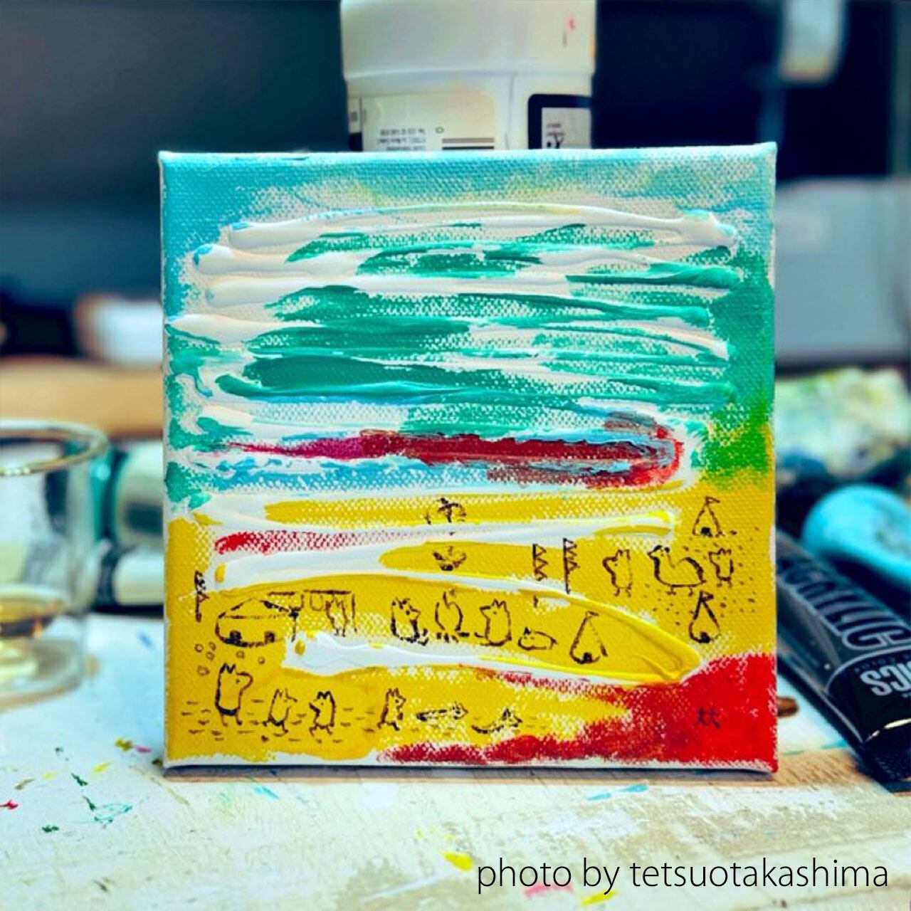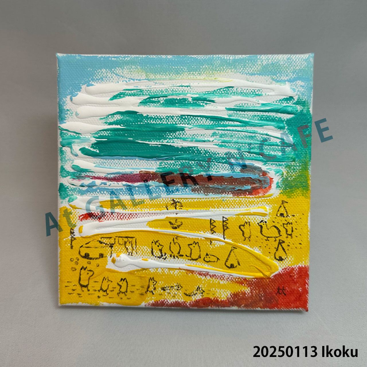 製作:2025年/キャンバス/画材:アクリル絵の具/サイズ:150×150mm。お使いの端末や環境により、写真と実物の色味や質感が多少異なって見えることがあります。