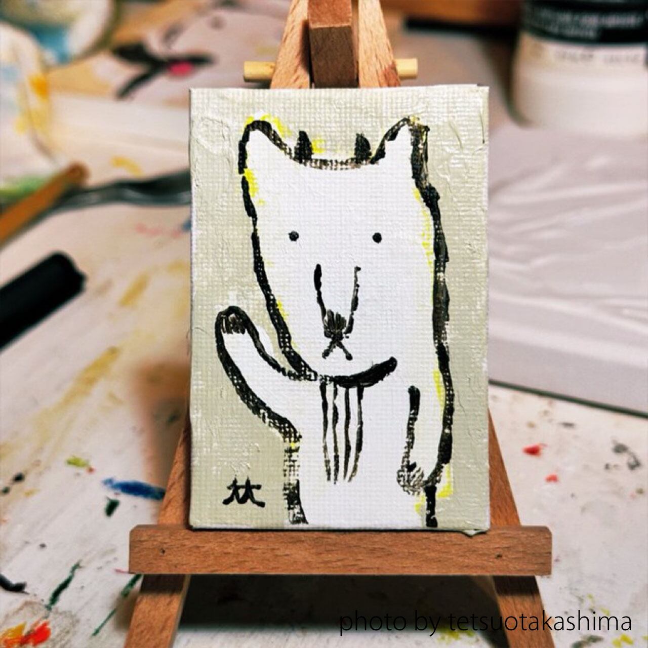 製作:2025年/キャンバス/画材:アクリル絵の具/サイズ:80×50mm。お使いの端末や環境により、写真と実物の色味や質感が多少異なって見えることがあります。イーゼル付