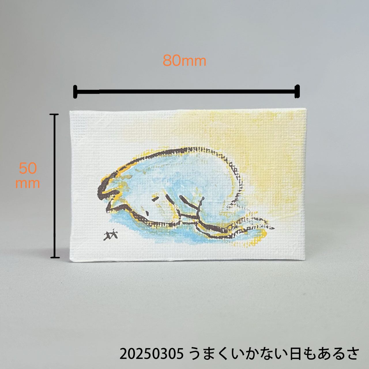 製作:2025年/キャンバス/画材:アクリル絵の具/サイズ:50×80mm。お使いの端末や環境により、写真と実物の色味や質感が多少異なって見えることがあります。イーゼル付