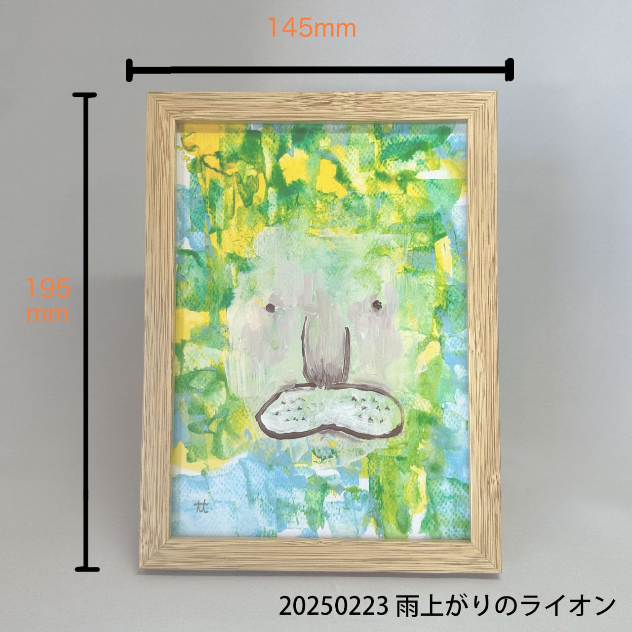 製作:2025年/画用紙/画材:アクリル絵の具/サイズ:145×195mm。お使いの端末や環境により、写真と実物の色味や質感が多少異なって見えることがあります。フレーム付き。
