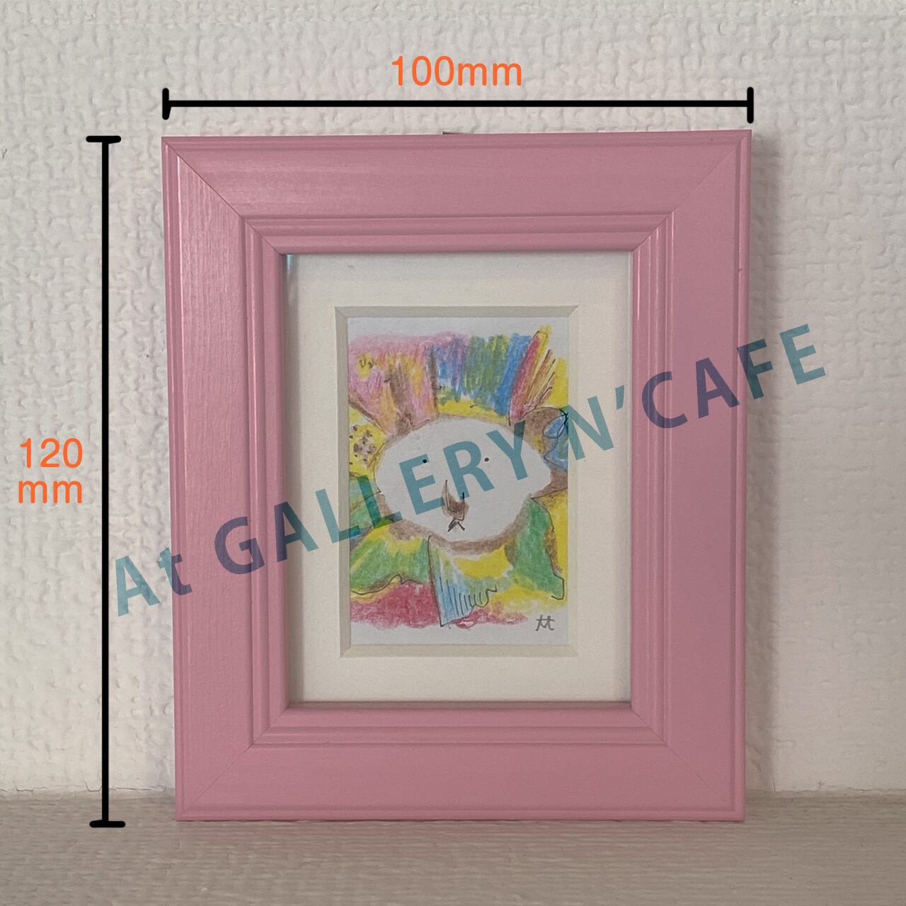 たかしまてつをが日常の中で描いた小さなドローイングを額装しました。縦置きスタンド、吊金具は縦横2個付いています。製作:2020年/画材:ペン、色鉛筆/サイズ:100×120mm(フレーム込、フレームカラー:ピンク)。お使いの端末や環境により、写真と実物の色味や質感が多少異なって見えることがあります。