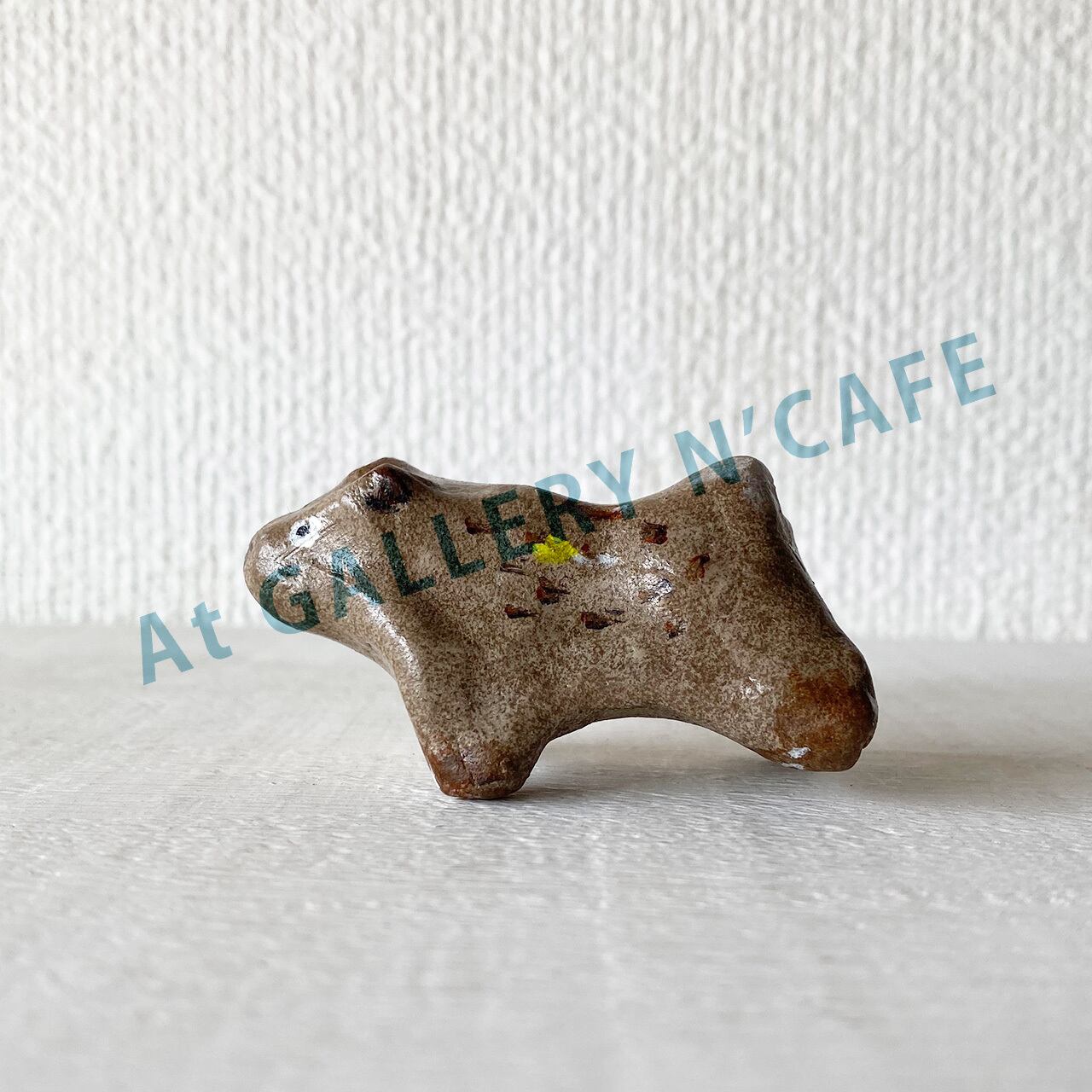 後ろ左脚がちょっと浮いてます。〝なも陶房〟は、たかしまてつをの陶芸作品です。家庭用のオーブンで焼ける陶土を使った、手のひらサイズのオブジェやお皿を製作しています。アクリル絵の具で塗装後、防水・防油のコート剤を塗っています。製作:2015年/サイズ:縦55×横30×高さ30mm(数値はおおよそです)。お使いの端末や環境により、写真と実物の色味や質感が多少異なって見えることがあります。