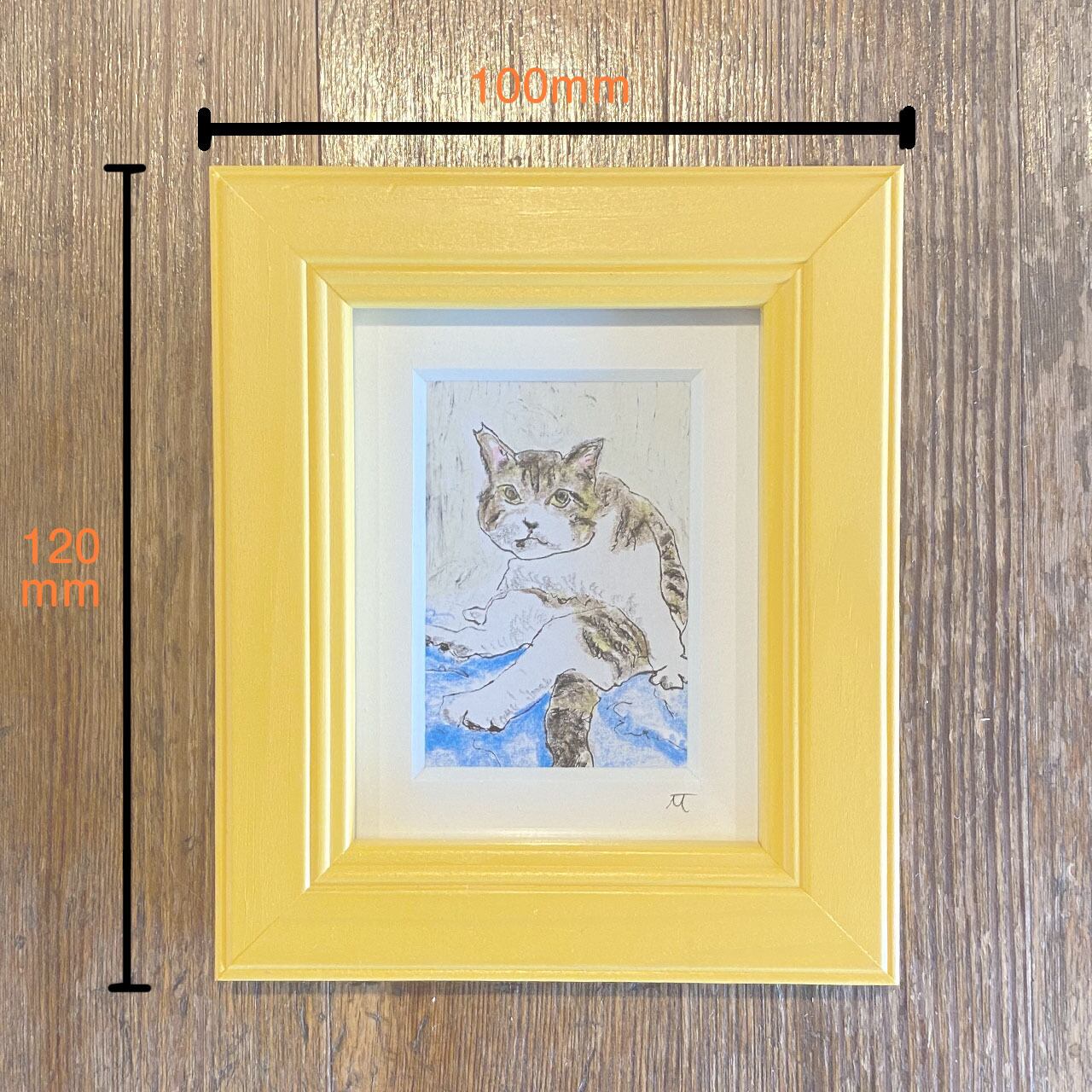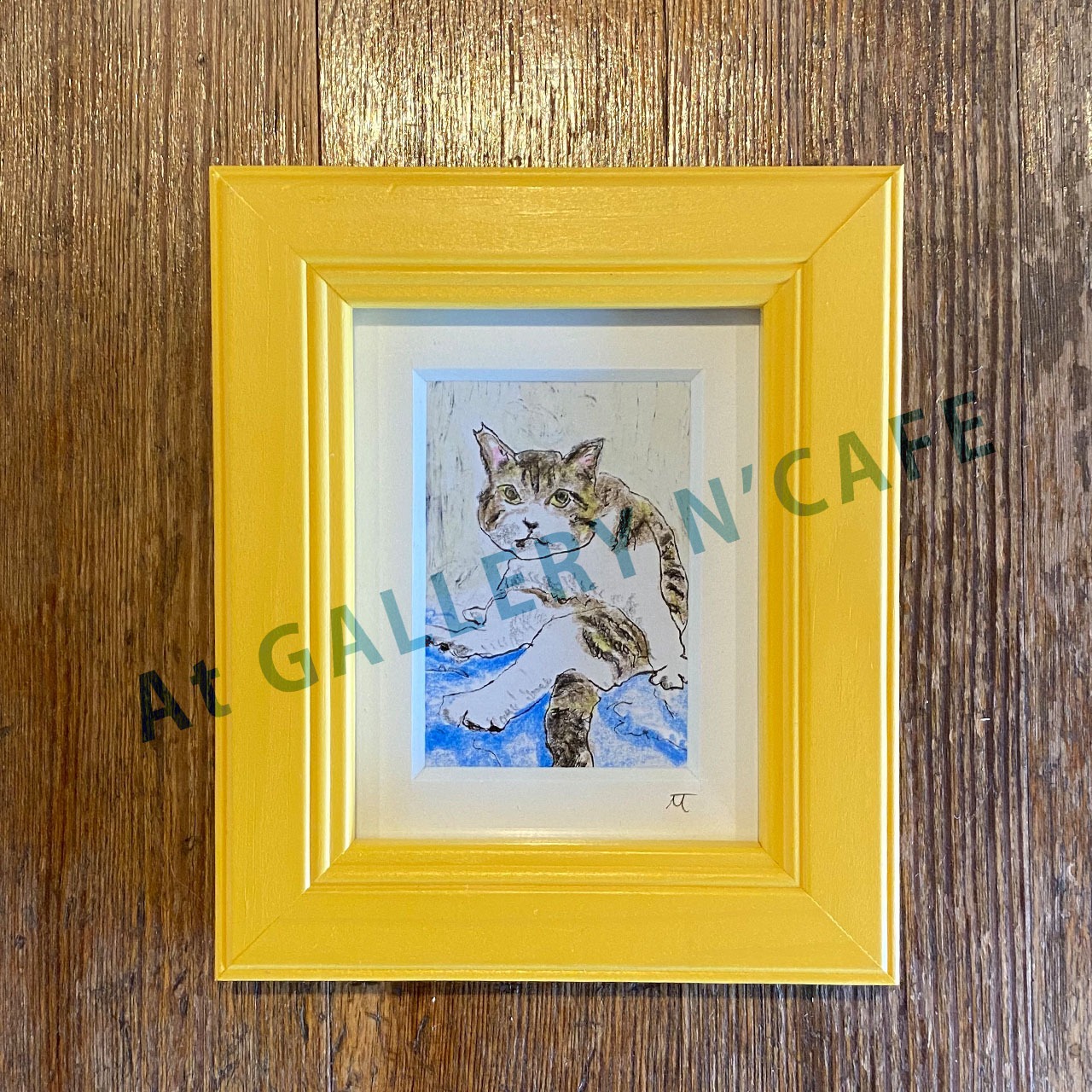 たかしまてつをが日常の中で描いた小さなドローイングを額装しました。縦置きスタンド、吊金具は縦横2個付いています。製作:2020年/画材:ペン、色鉛筆/サイズ:100×120mm(フレーム込、フレームカラー:イエロー)。お使いの端末や環境により、写真と実物の色味や質感が多少異なって見えることがあります。