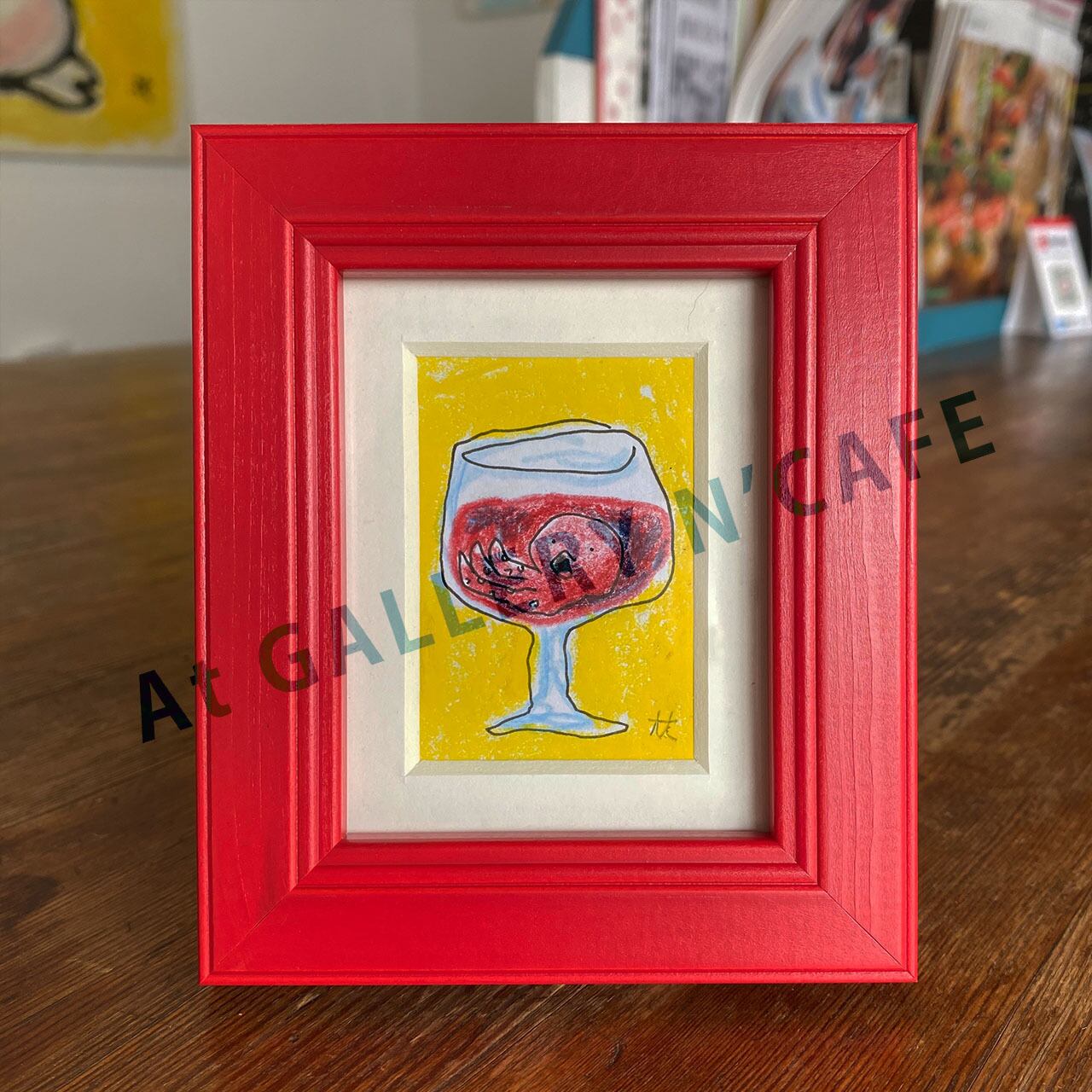 たかしまてつをが日常の中で描いた小さなドローイングを額装しました。縦置きスタンド、吊金具は縦横2個付いています。製作:2020年/画材:ペン、色鉛筆/サイズ:100×120mm(フレーム込、フレームカラー:レッド)。お使いの端末や環境により、写真と実物の色味や質感が多少異なって見えることがあります。