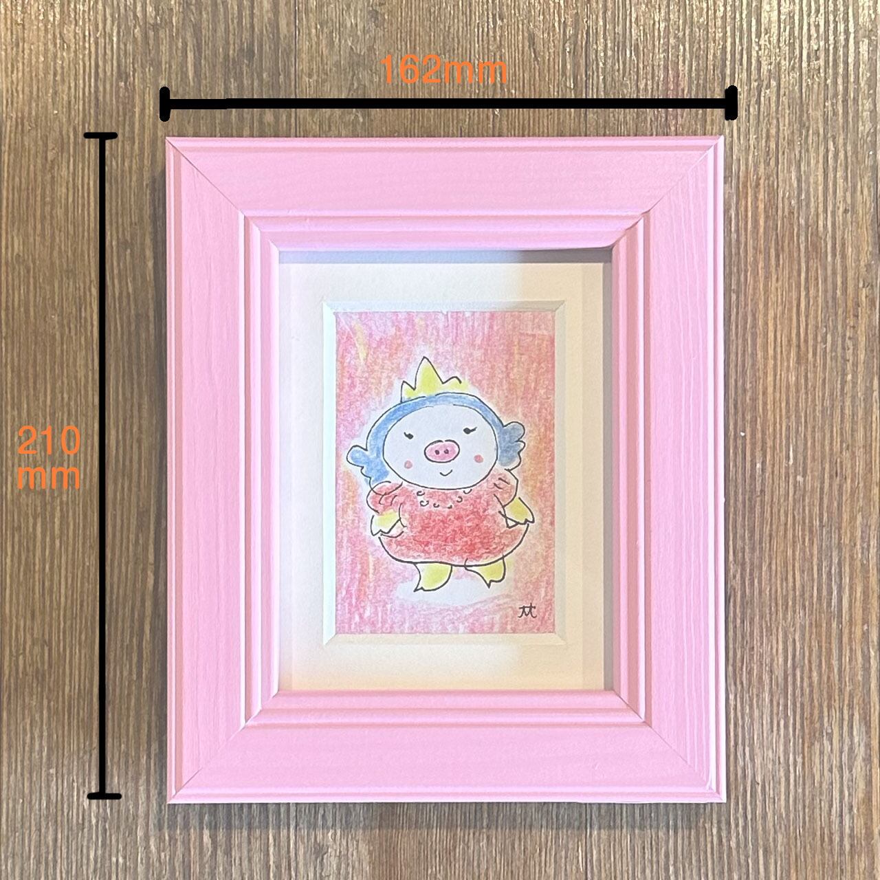 ブタフィーヌさんのお誕生日(9/8)に描きました。たかしまてつをが日常の中で描いた小さなドローイングを額装しました。横置きスタンド、吊金具は縦横2個付いています。製作:2023年/画材:ペン、色鉛筆/サイズ:100×120mm(フレーム込、フレームカラー:ピンク)。お使いの端末や環境により、写真と実物の色味や質感が多少異なって見えることがあります。